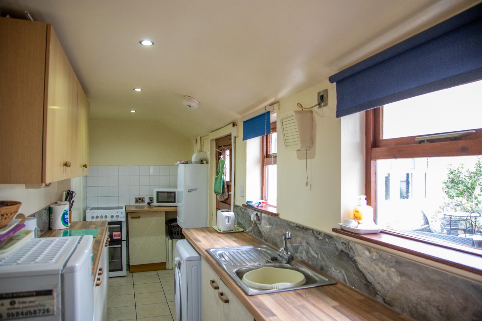 GROUND FLOOR: Small entrance lobby. L-shaped lounge (with Radio / CD / Cassette player, TV, DVD,Video recorder & Double bed settee) – the lounge incorporates a dining area (with drop leaf table & Folding chairs). Large kitchen (Fully equipped) Including washer/Dryer Shower room with Wash-hand basin and WC.