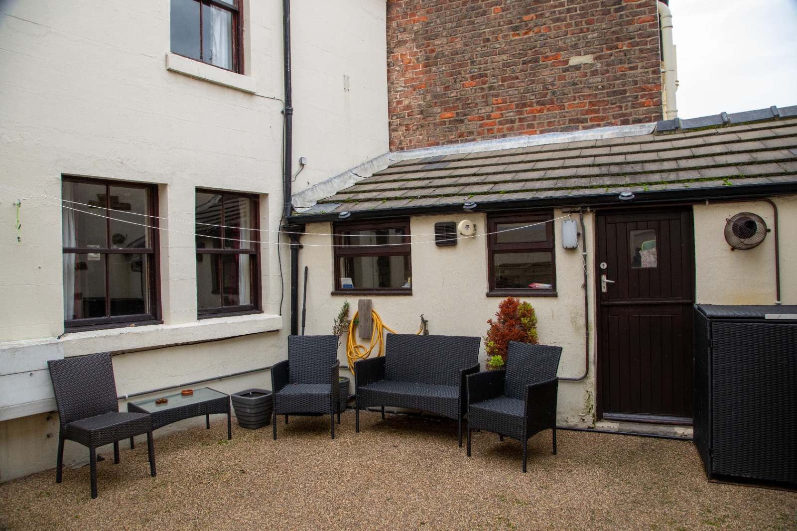 BACK YARD: Is shared with two other cottages and includes a drying area.